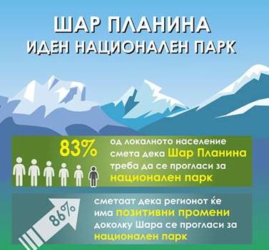 – Резултатите од ова истражување се навистина позитивни, конечно знаеме какво е мислењето на локалното население во однос на прогласувањето на Шар Планина за национален парк во руралните и урбаните средини во овој регион. Анализата на податоците покажа дека луѓето сметаат оти со идното заштитено подрачје не само што ќе се воведе поголема контрола врз ресурсите на планината, туку и дека тоа ќе донесе позитивни промени во однос на развојот на регионот, изјави Фросина Пандурска-Драмиќанин, раководител на проект во Македонско еколошко друштво.